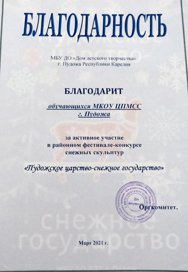 МБУ ДО "Дом детского творчества" г.Пудожа РК поблагодарил обучающихся МКОУ Центра ПМСС за активное участие в