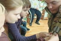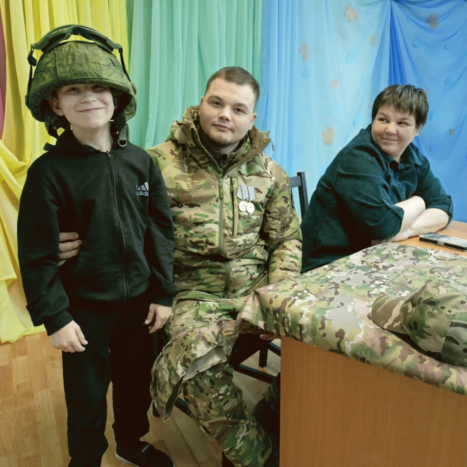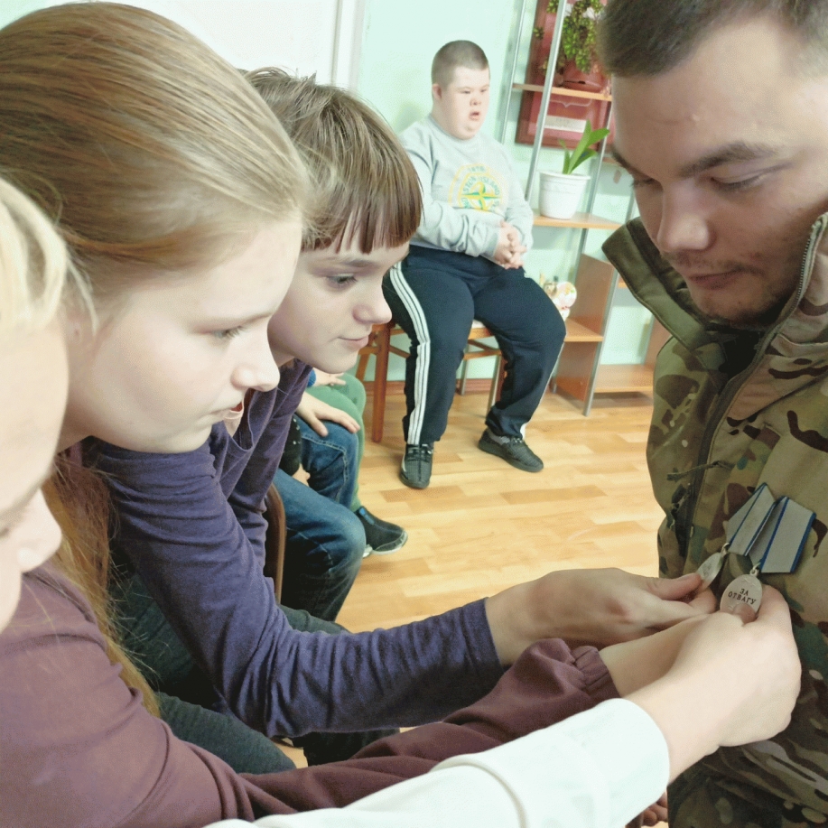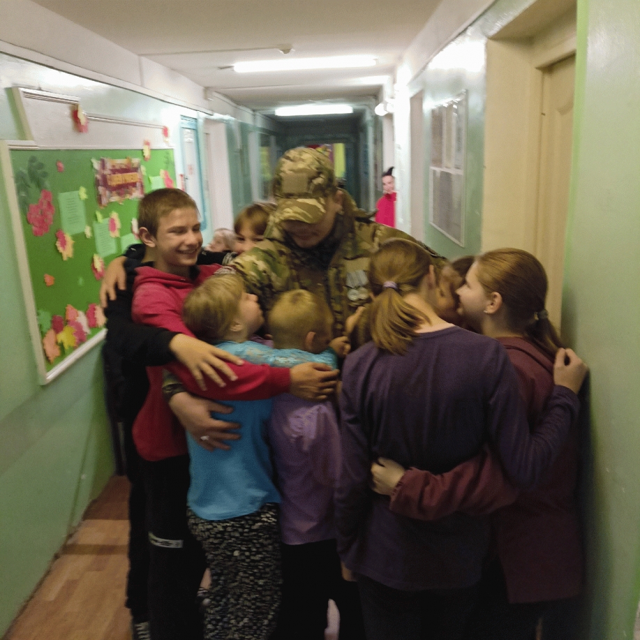Обучающиеся, педагоги и родители МКОУ ЦПМСС на протяжении всего учебного года собирали продукты питания, средства гигиены, медикаменты для участников СВО, писали письма солдатам, делали заготовки для блиндажных свечей, оказывали всевозможную помощь клубу "За Победу!". Неожиданным сюрпризом для детей стала встреча с участником СВО - Максимом. Максим вместе с руководителем клуба "За Победу!" Еленой Вячеславовной Дворниковой пришли сказать ребятам спасибо. Ребята задавали вопросы и в заключение попросили показать, как маршируют солдаты. В итоге маршировали все вместе по коридору.