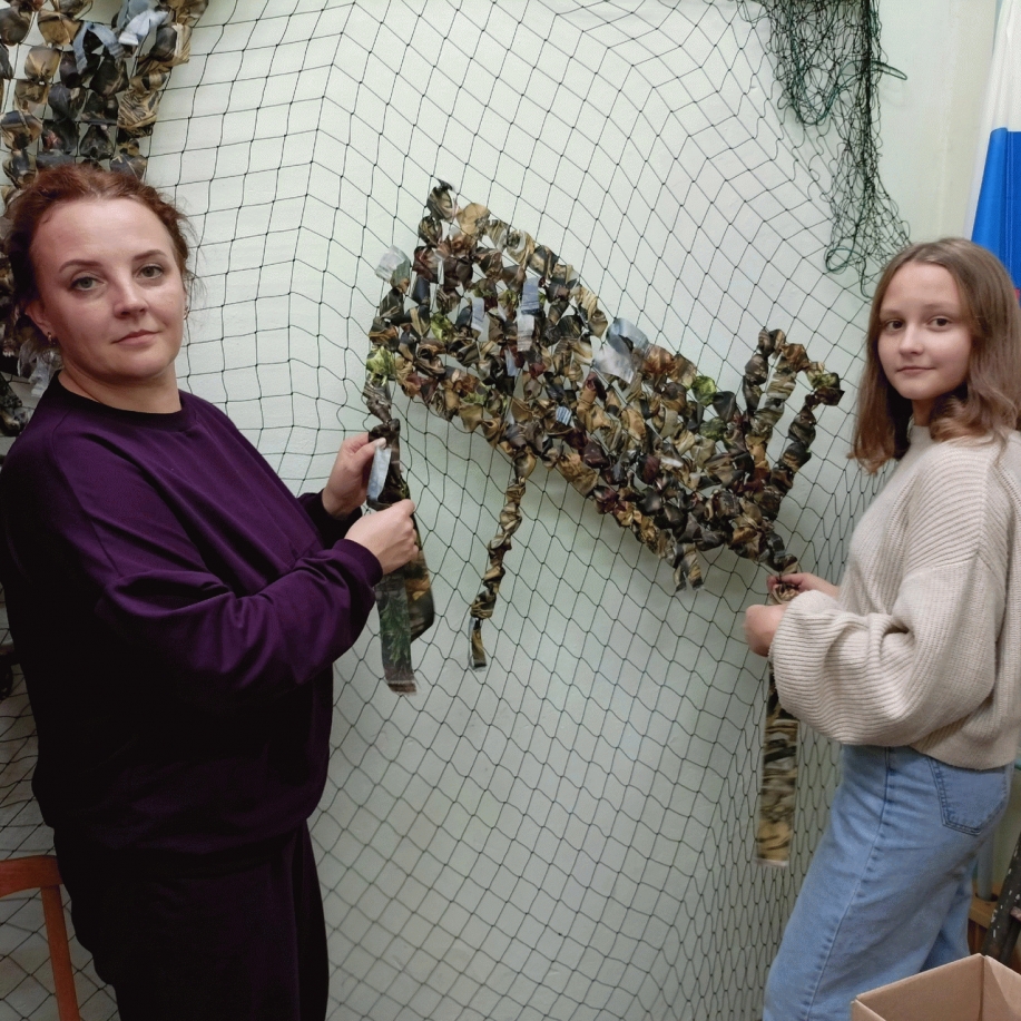 Педагоги МКОУ Центр ПМСС Пудожского района в клубе За победу! помогли плести маскировочные сети. Вместе со взрослыми потрудились и дети сотрудников.