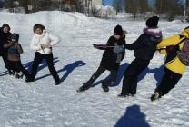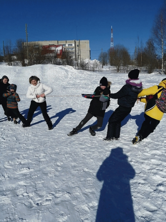 «Зимнее суши», «Волшебное кольцо», «Деревенский хоккей», «Кубик на ракетке», «Прыжки с мячом», «Снежный ком», «Переправа» и «Метание тарелочек». Со всеми заданиями ребята успешно справились. А завершающим испытанием стало перетягивание каната, где в упорном противостоянии победа каждый раз переходила от одной команды к другой. В итоге победила ДРУЖБА!