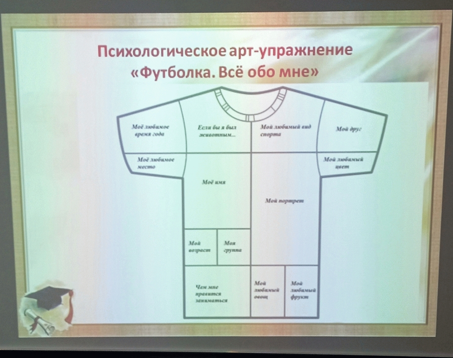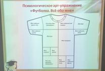 А в завершении заседания, в качестве психологической разгрузки, педагог-психолог ЦПМСС Мария Петровна Лазарева предложила коллегам отразить свой внутренний мир в творческом задании - арт-упражнении «Футболка. Всё обо мне».