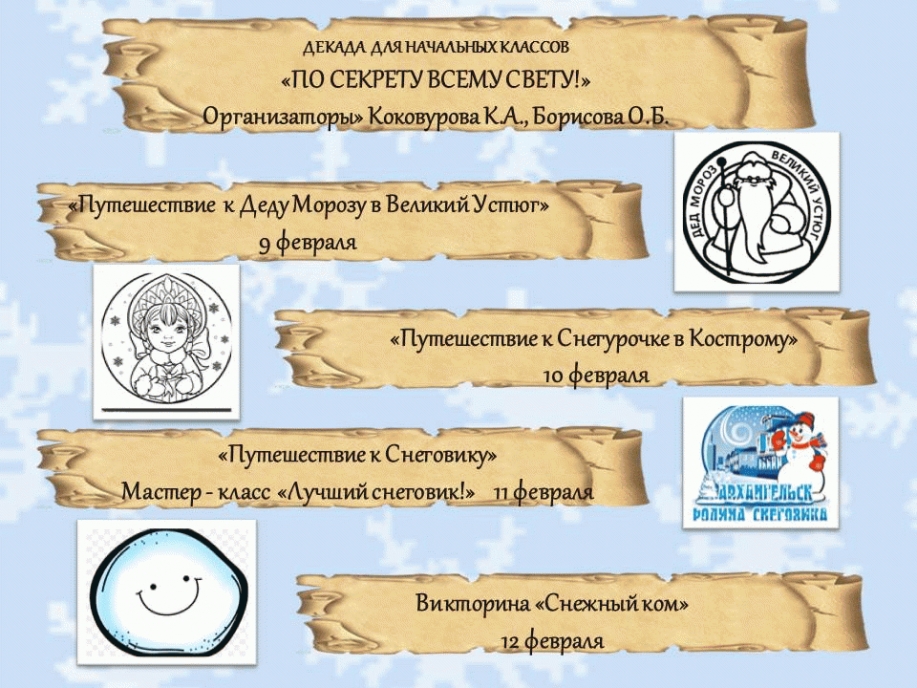 Организаторы Коковурова К.А. (учитель начальных классов) и Борисова О. Б.(учитель –логопед) подготовили для детей декаду «По секрету всему