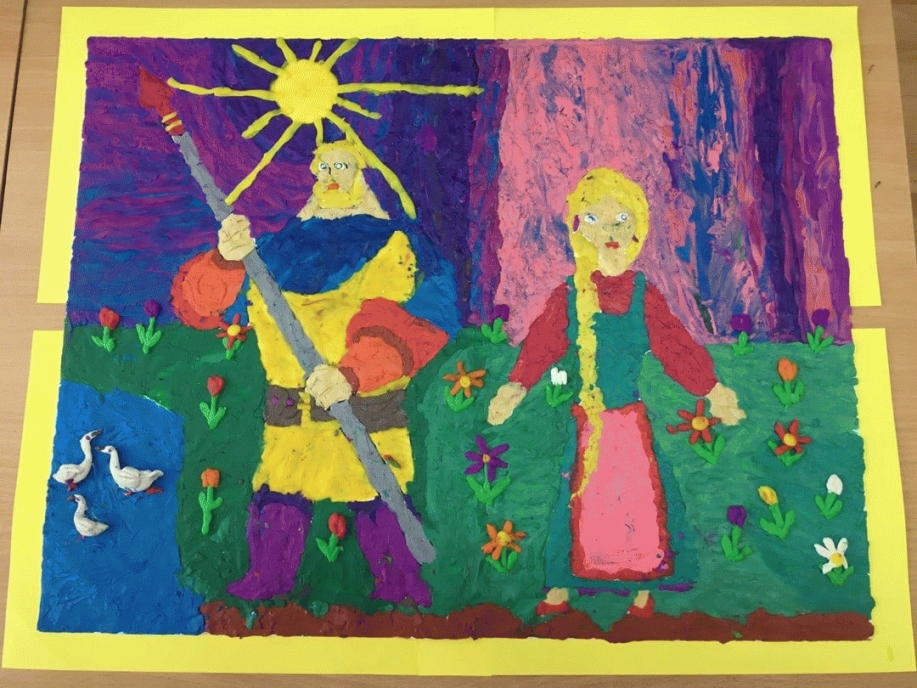 в технике пластилинографии «Настасья и Илья Муромец» и заняла призовое II место!