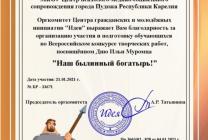 Поздравляем Виолу и куратора, учителя русского языка и литературы ЦПМСС Ирину Юрьевну Проклову и желаем дальнейших успехов!!!