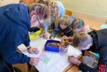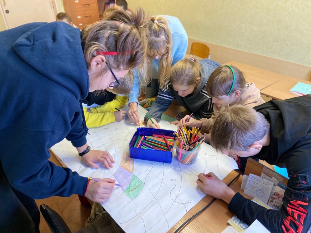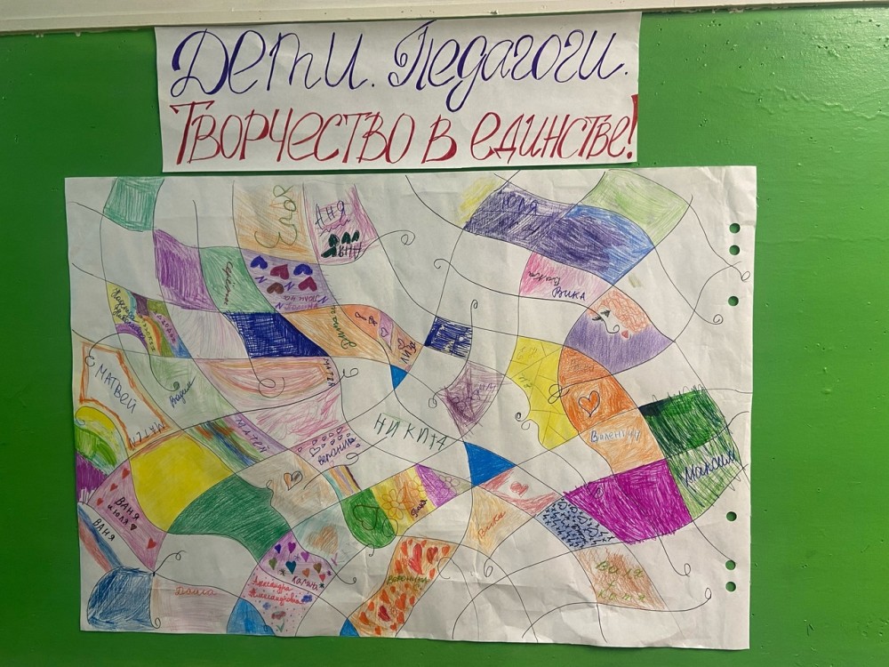 Обучающимся и педагогам была предложена психологическая акция «Я в мире, мир во мне», в которой каждый желающий смог выбрать на общей раскраске свой «пазл», подписать его и выделить любым цветом. Такие акции объединяют педагогов и детей. Дети рассматривали с интересом пазлы педагогов и других учеников.