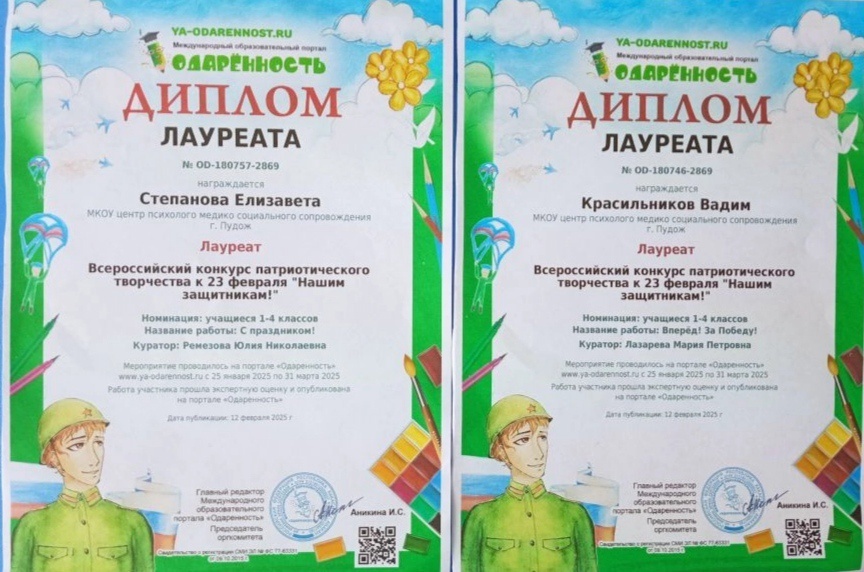 Участие обучающихся во Всероссийском конкурсе патриотического творчества "Нашим Защитникам!"