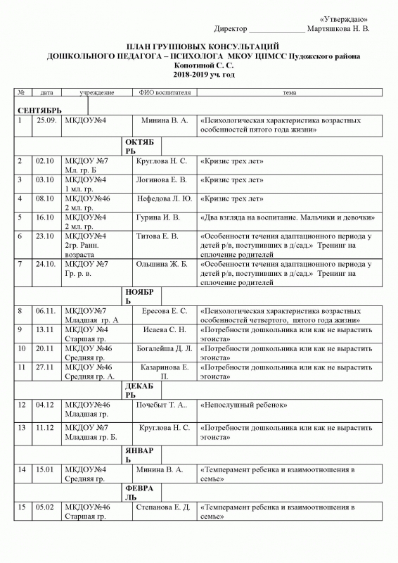 ПЛАН ГРУППОВЫХ КОНСУЛЬТАЦИЙ