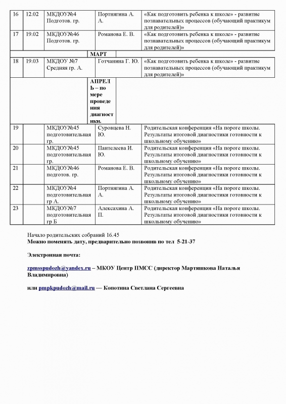 родителям своевременной помощи по тому или иному вопросу воспитания.