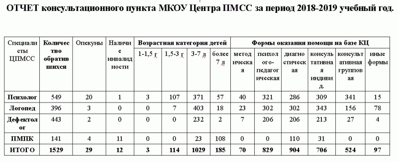 8.Отчет работы Консультационного пункта МКОУ Центра ПМСС за период 2018 - 2019 учебный год.